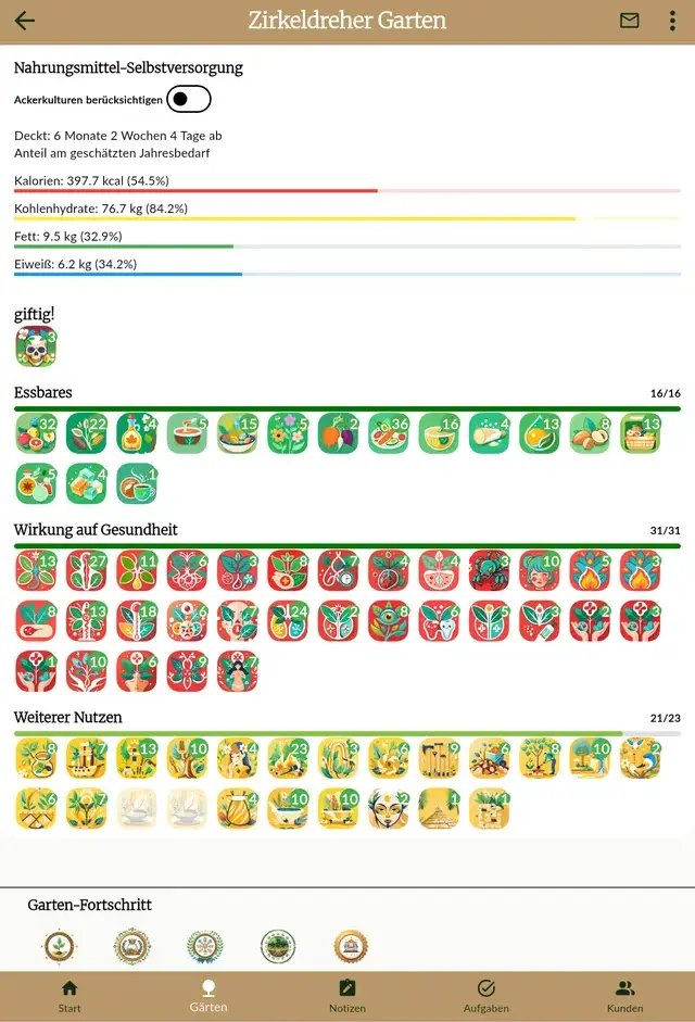 📊 Auswertungen & Selbstversorgungs-Check